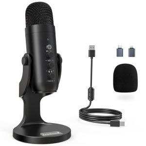 Special Feature – Professional Cardioid Condenser Mic with Touch Mute Button and Mic Gain Knob for Recording, Podcasting, Gaming, YouTube
