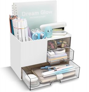 1. Shuttle Art Desk Organizer with 3 Drawers 3-Tier Storage Box with 5 Compartments for Stationery