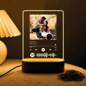 6)Personalised Spotify Photo Frame with LED Light Wooden Stand |